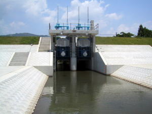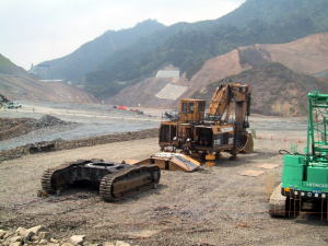 私 重ダンプを間近で見たのは2回目。やはりでかい。タイヤなんて人間よりも大きい。けどこれでも小さい方だそうだ。 その後、えびのへ移動。昨年うちの機械がとりついている川内川の水門へ。田内先輩の実家の近くでは?