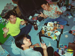 鈴木君が大学を卒業したこの年、めでたく上京して勝手に関東支部の集まりに参加するようになりました。 ここは山口先輩の相武台の寮。 相変わらずの宴会です。 |